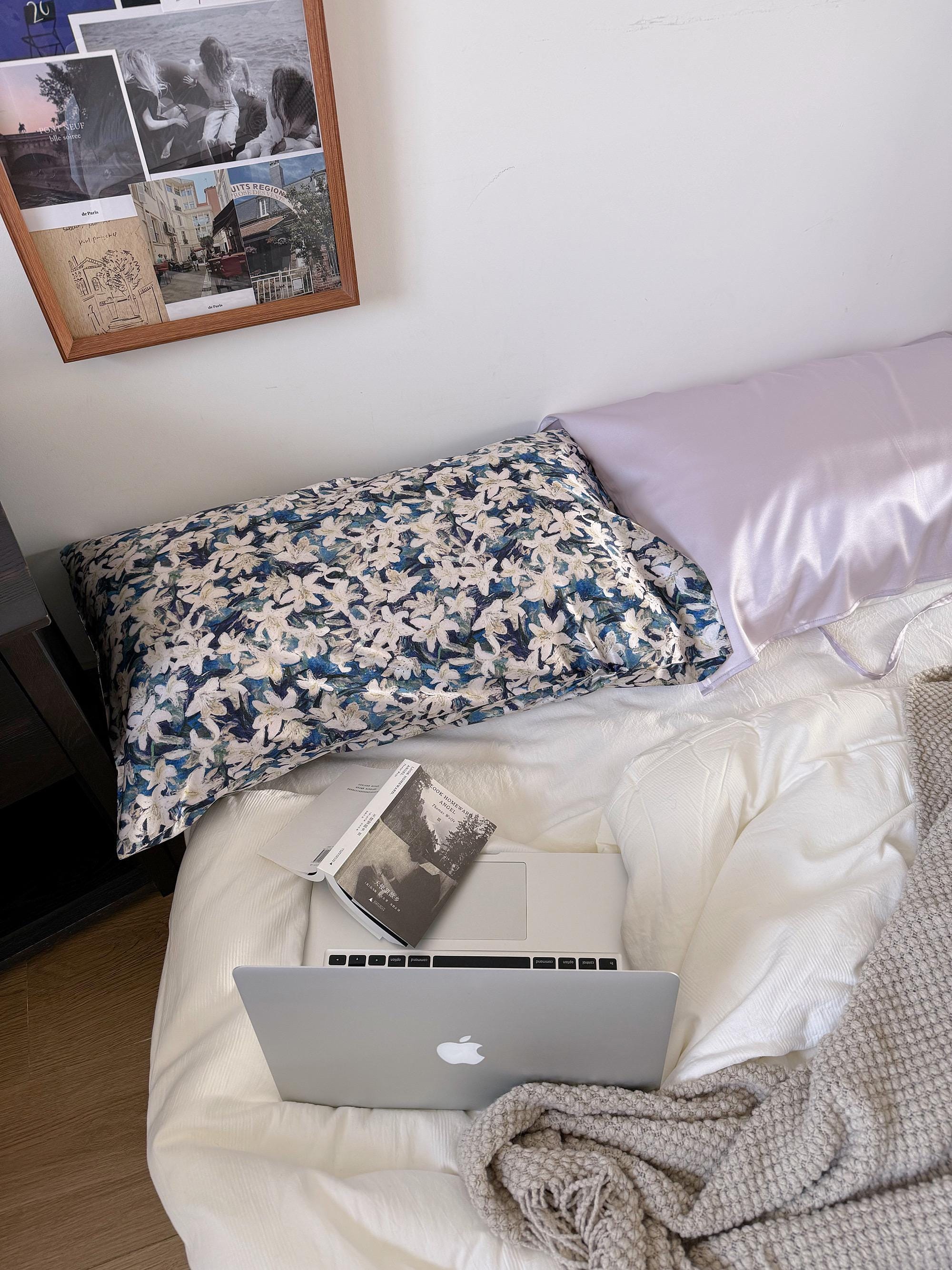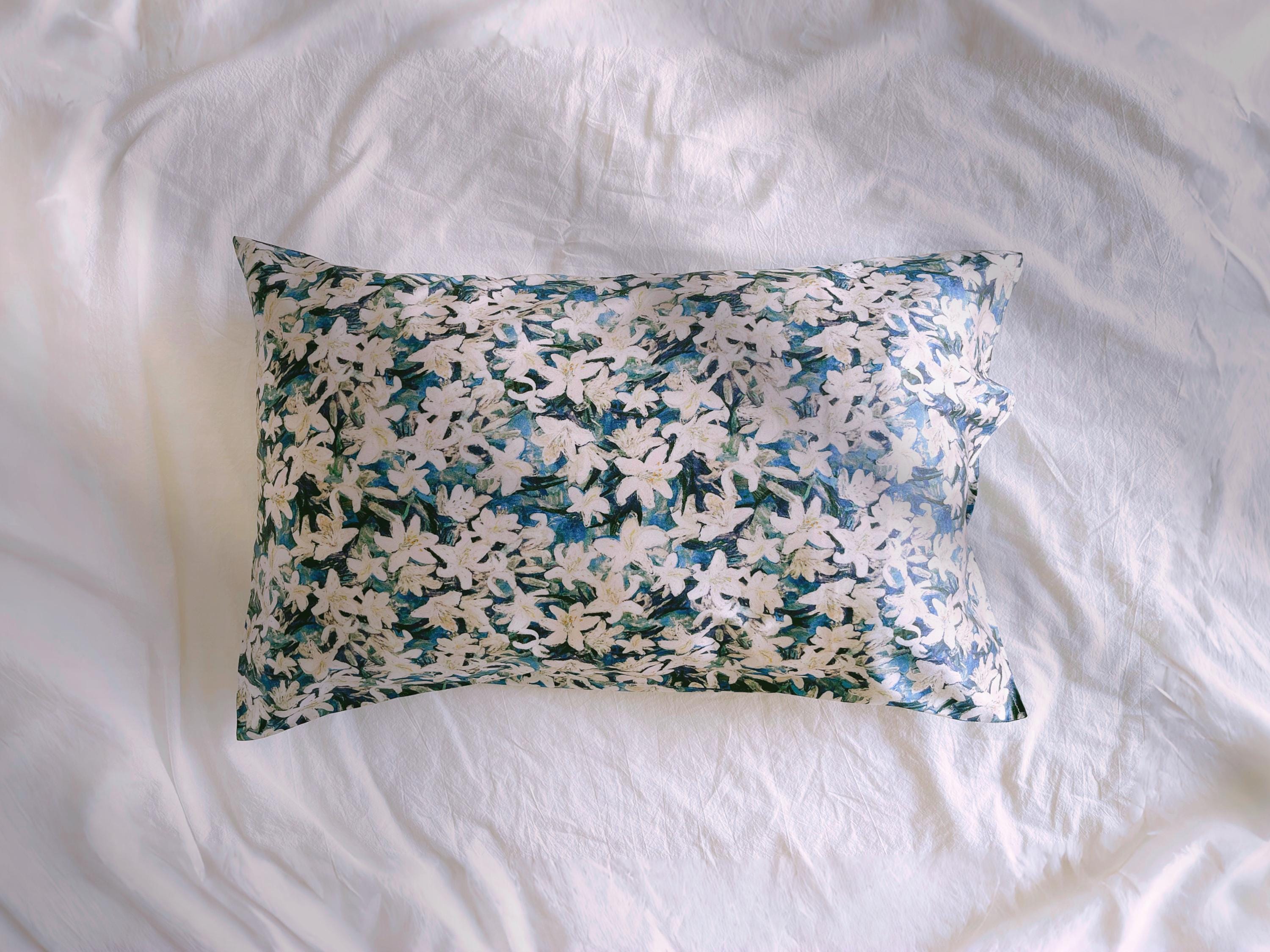 Indulge in the luxurious charm of our Impressionist Blue Floral pure Silk Pillowcase, a perfect choice for a touch of nature freshness in your bedroom. This pillowcase features a stunning oriental lily pattern reminiscent of an impressionist painting, bringing an artistic allure to your sleep sanctuary.