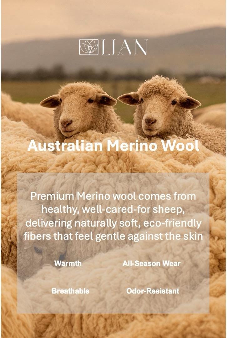 31% Merino wool blend: warm, soft, breathable, odor-resistant
