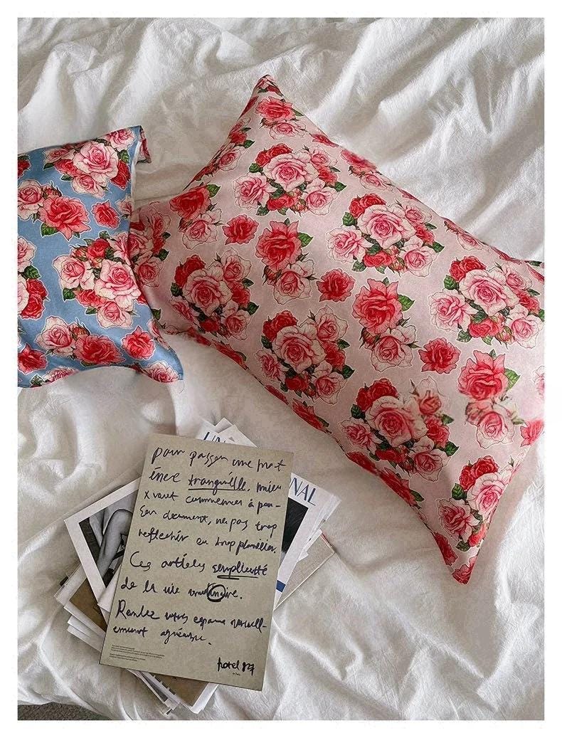 Colour: Blooming Red Rose Pattern in pink and blue pillowcase