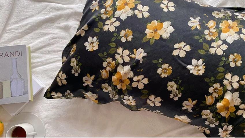 Complete with a convenient storage bag, this set is perfect for travel or gifting to someone special. Treat yourself or a loved one to the ultimate in sleep luxury with our Blossom Flowers Mulberry Silk Pillowcase Gift Set.