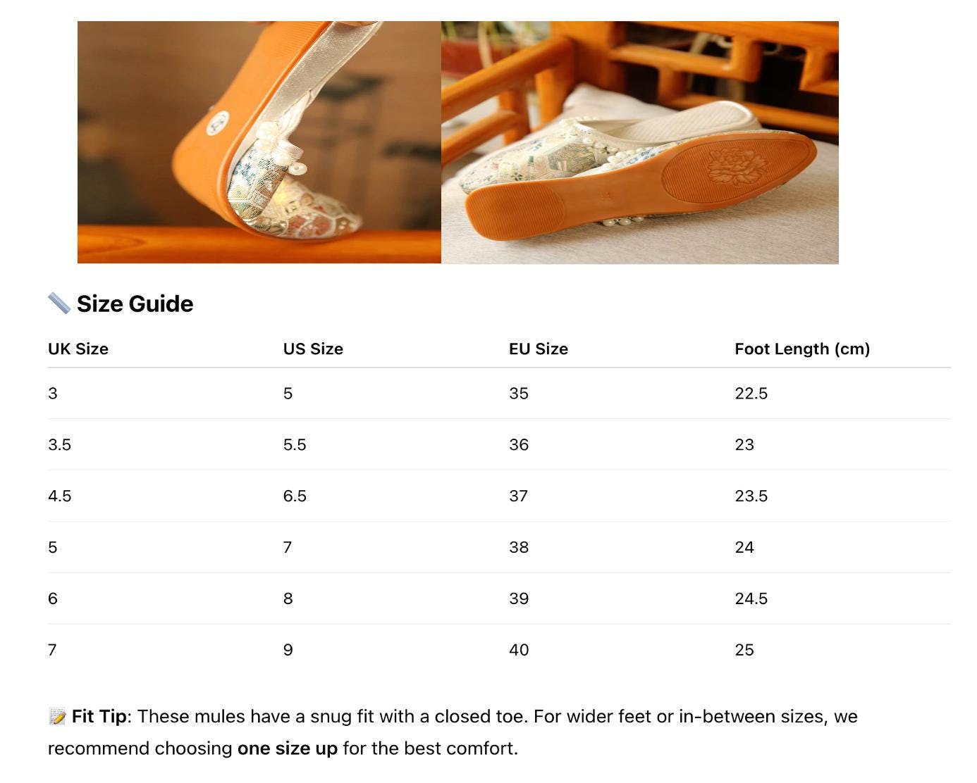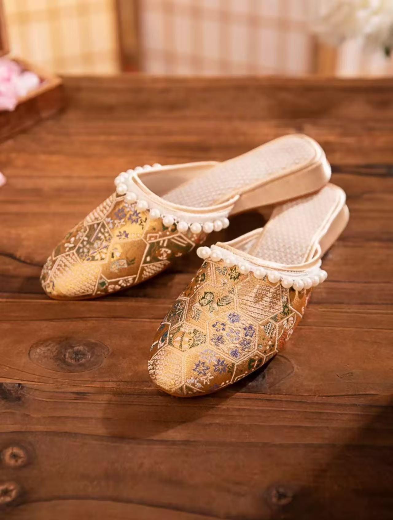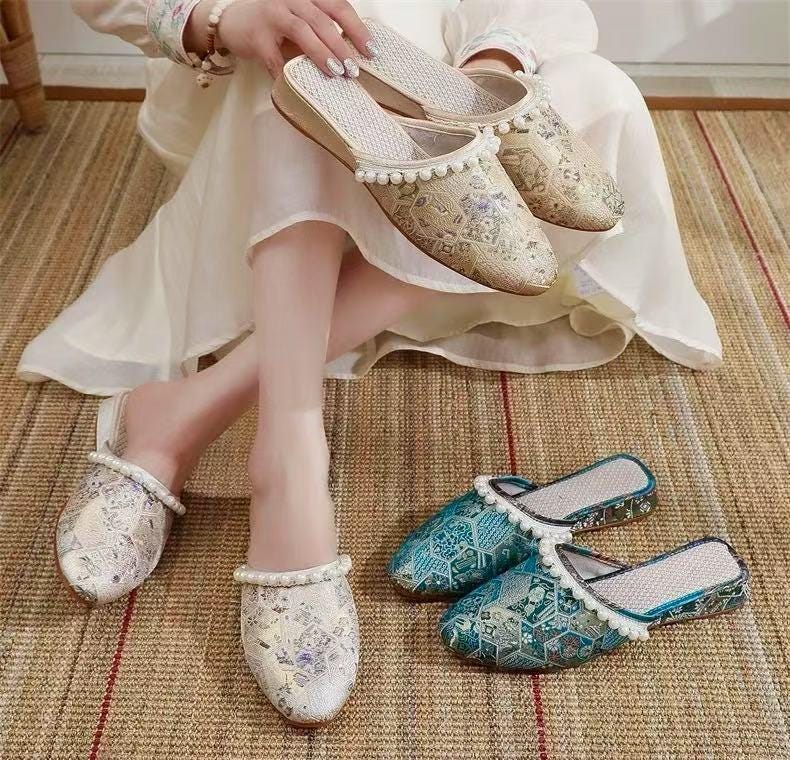 This embroidered Oriental-style mules – soft, flexible, and tailored for graceful living. Whether you're hosting at home, dressing up a qipao, or running errands in comfort, these versatile slippers add charm to every step.