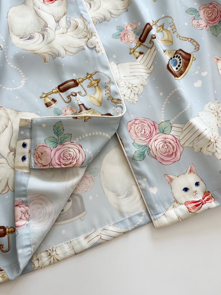 Designed to be skin-friendly, our pyjamas ensure a cozy and soothing experience all night long, making them perfect for lounging or drifting into a peaceful slumber. The light blue color with charming kitty patterns adds a delightful touch of whimsy to your bedtime routine.