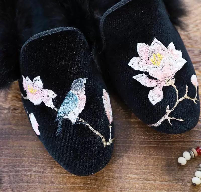 ๐Ÿ‘ž About the slippers: Introducing our Handmade Embroidered Winter Slippers! These oriental-style mules feature delicate hand embroidery and soft faux fur for warmth. Available in three elegant colors, theyโ€™re perfect for home wear or as a thoughtful holiday gift. Embrace the blend of tradition and comfort!