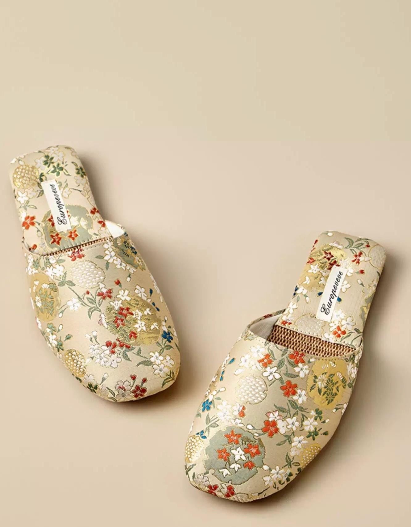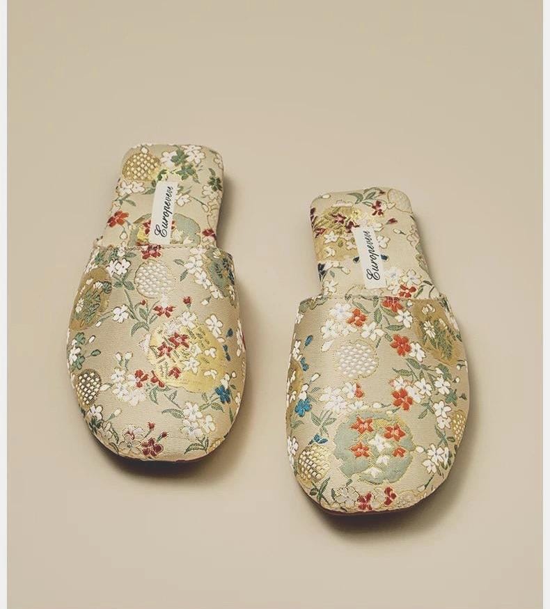 Oriental Embroidered Slippers for All Season – Handmade Mules for Women | Golden Embroidered Shoes | Cultural Heritage Gift Idea