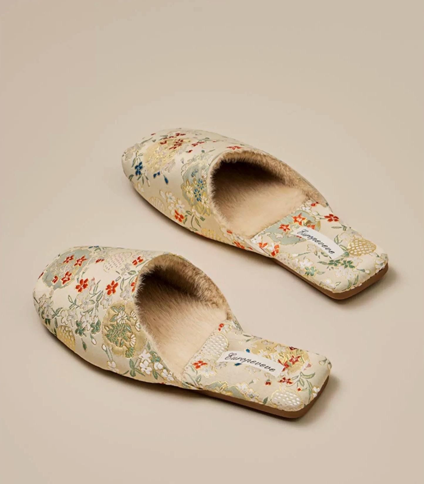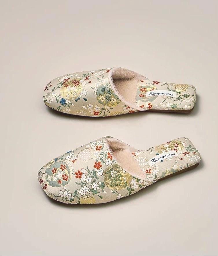 These oriental-style indoor mules pair intricate hand embroidery with plush faux fur lining for a winter-ready experience. The silhouette is inspired by traditional Han-style footwear, modernized for today’s lifestyle. Comfortable, warm, and beautifully detailed — they’re more than slippers, they’re a wearable story.