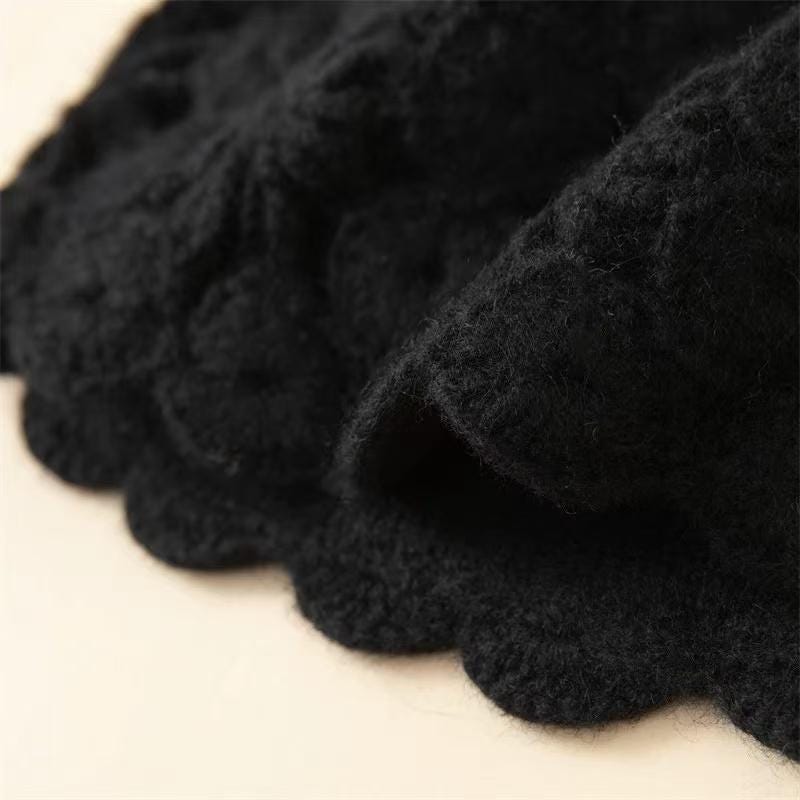 Hand-knitted in a soft cashmere-wool yarn, this double-layer beanie wraps your head in light, cloud-soft warmth. The floral crochet lace outer with a smooth inner layer keeps you warm without bulk—a chic winter hat for every day and a thoughtful Christmas gift for her.