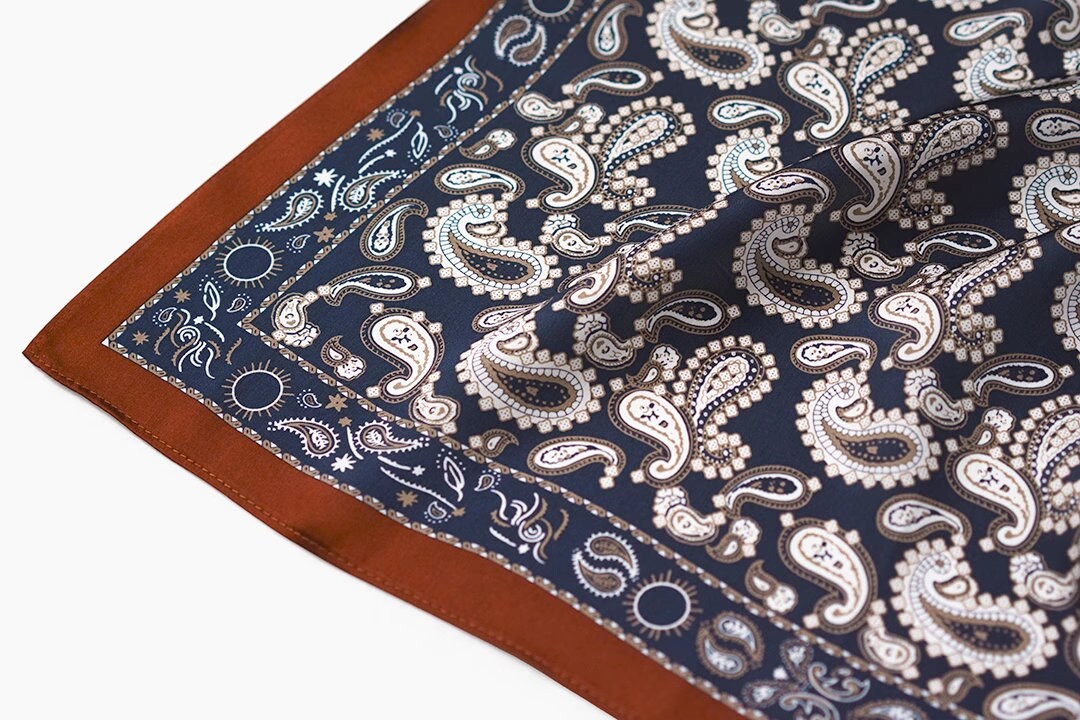 Paisley Mulberry Silk Scarf with Scarf Ring | Vintage Style Bandana