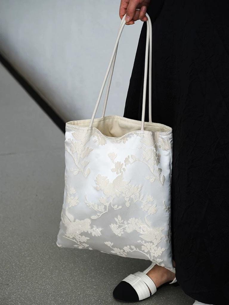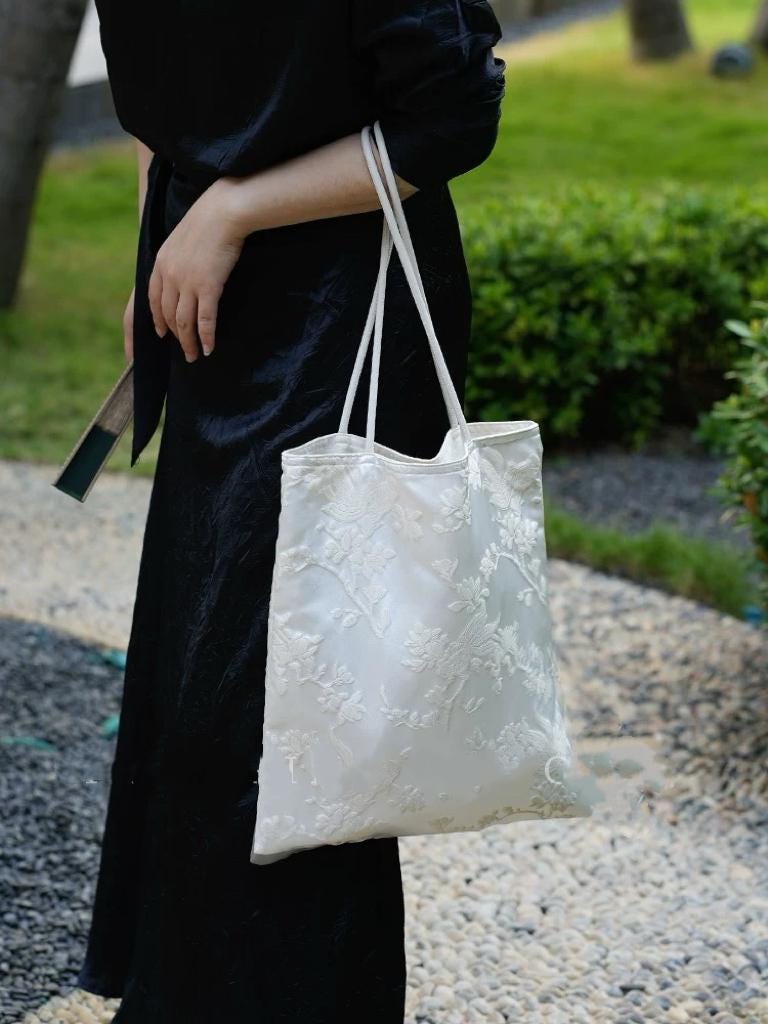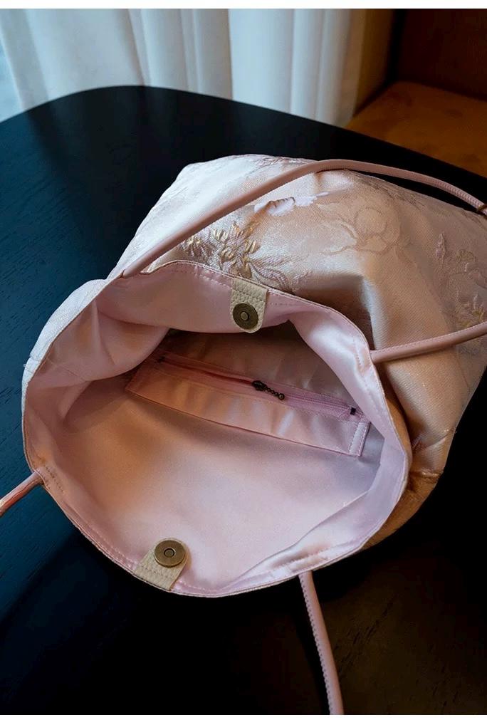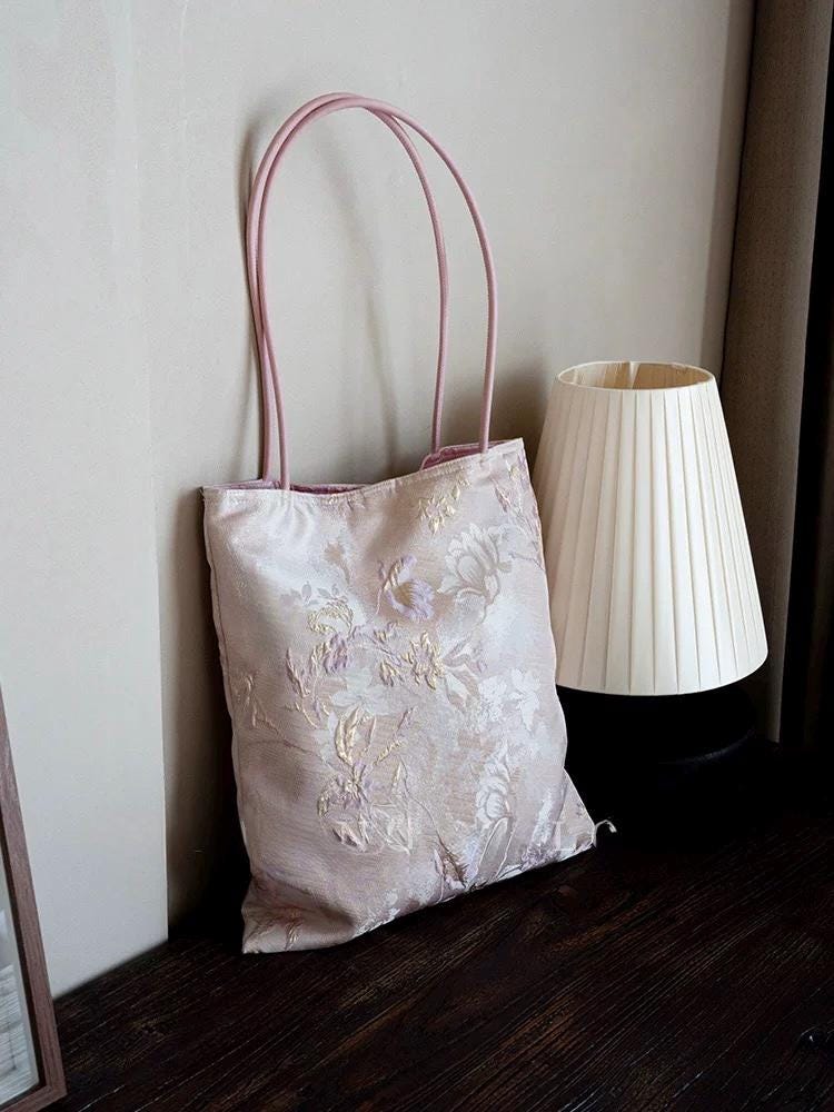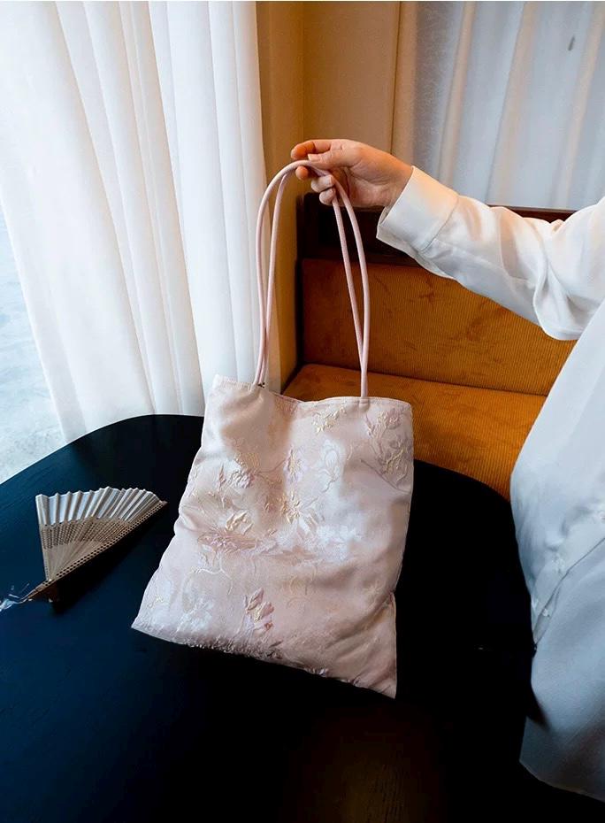 Elevate your everyday with this handmade silk embroidered tote bag, designed using exquisite oriental jacquard fabric. Every piece is carefully crafted with attention to detail, combining cultural artistry with practical elegance.