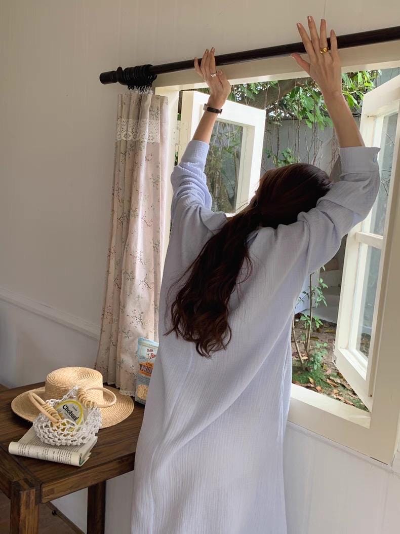 This linen and cotton blend shirt dress is a wardrobe essential for anyone who loves calm tones and natural texture. The light blue hue brings softness to your everyday moments—whether you're reading by the window, taking a slow brunch, or strolling through a holiday town.