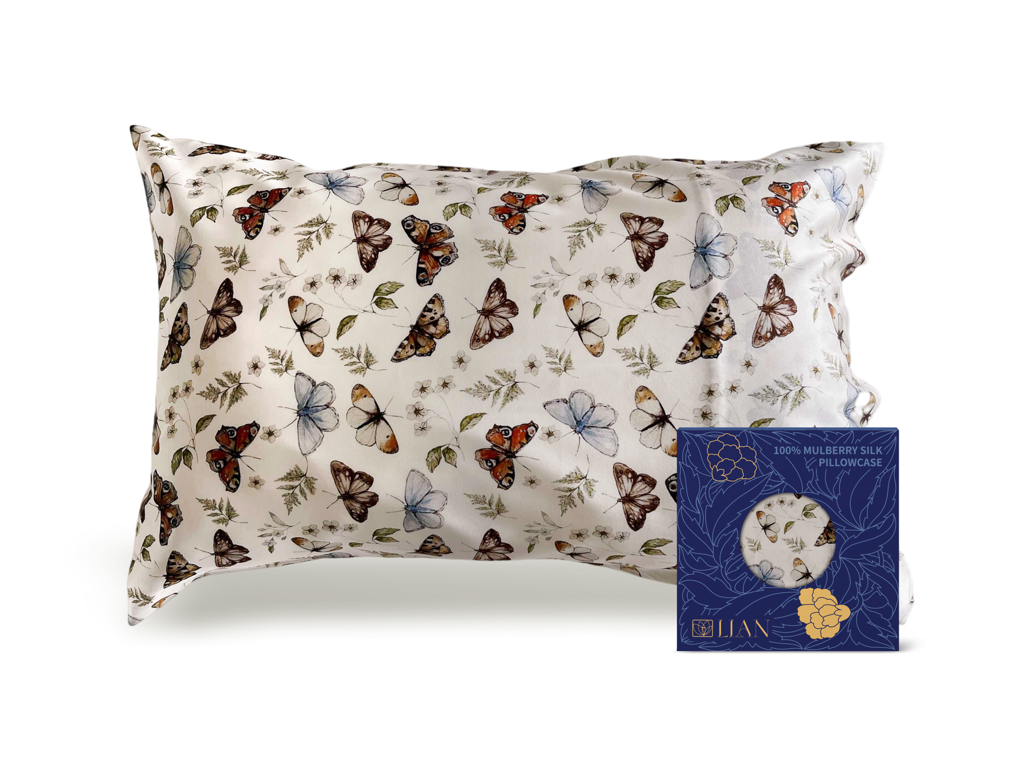 Upgrade your beauty sleep with this ultra-soft 100% silk pillowcase, crafted for luxurious comfort and timeless elegance. Designed with a vintage-inspired butterfly print, it’s the perfect blend of style, skin benefits, and sleep-enhancing comfort.
