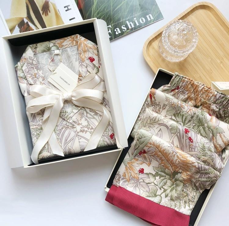 Wrap her in softness and elegance with this floral silk-blend pajama gift set — beautifully presented in a premium gift box with satin ribbon. Silky, breathable, and draping gracefully on the skin, it’s made for cosy evenings, slow weekends, and thoughtful gifting. Whether it’s for Christmas, a birthday, Mother’s Day, or a quiet self-care moment, this set arrives fully gift-ready and guaranteed to make her feel cherished.