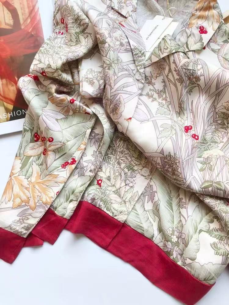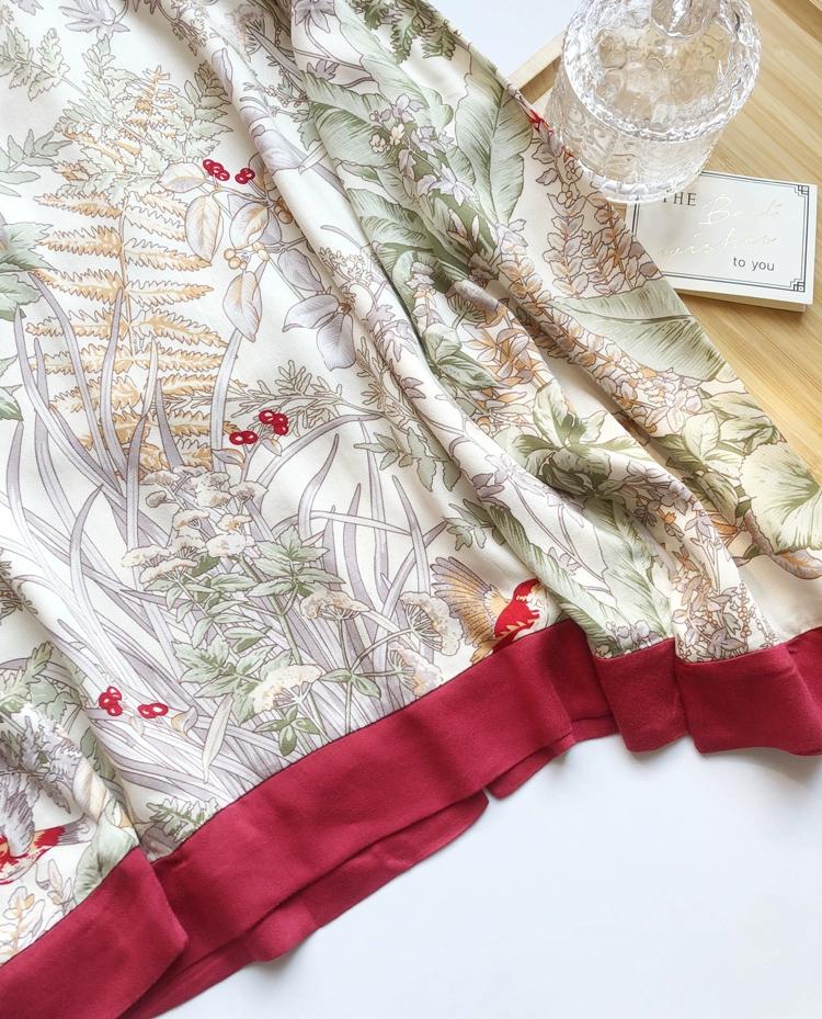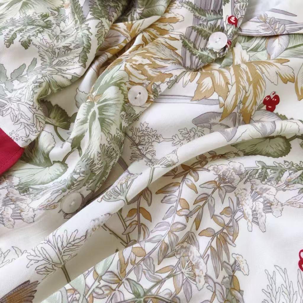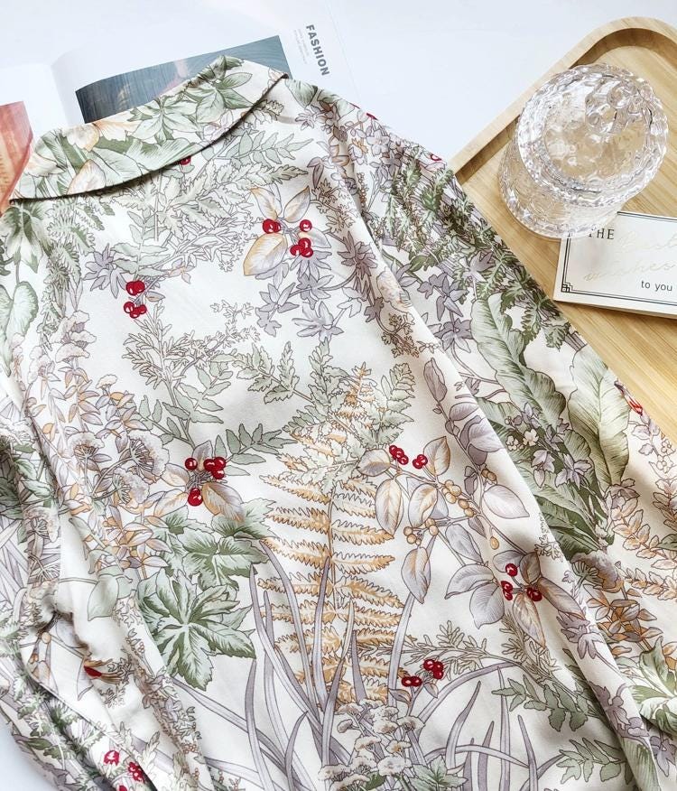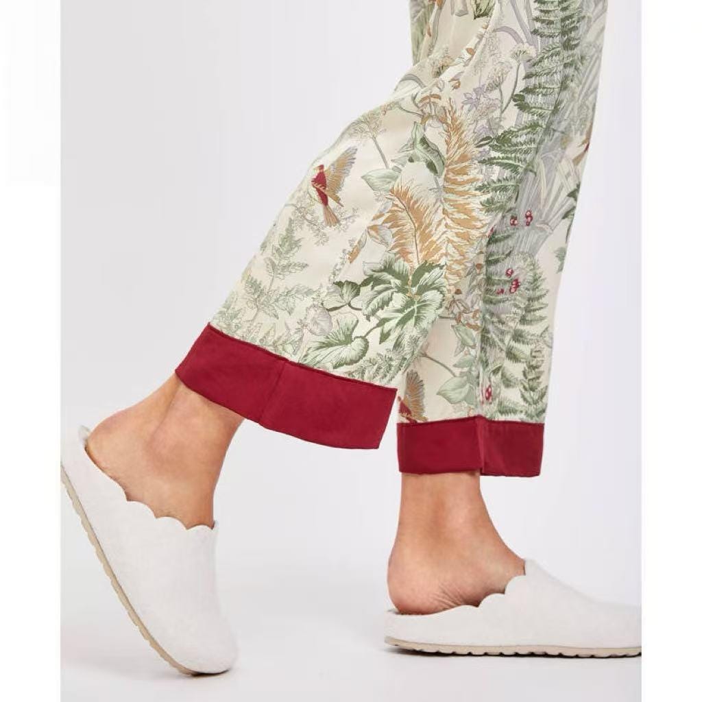 Floral Silk Blend Pajama Set: Luxury Long Sleeve Sleepwear, Red Trim, Christmas Pajamas in Gift Box