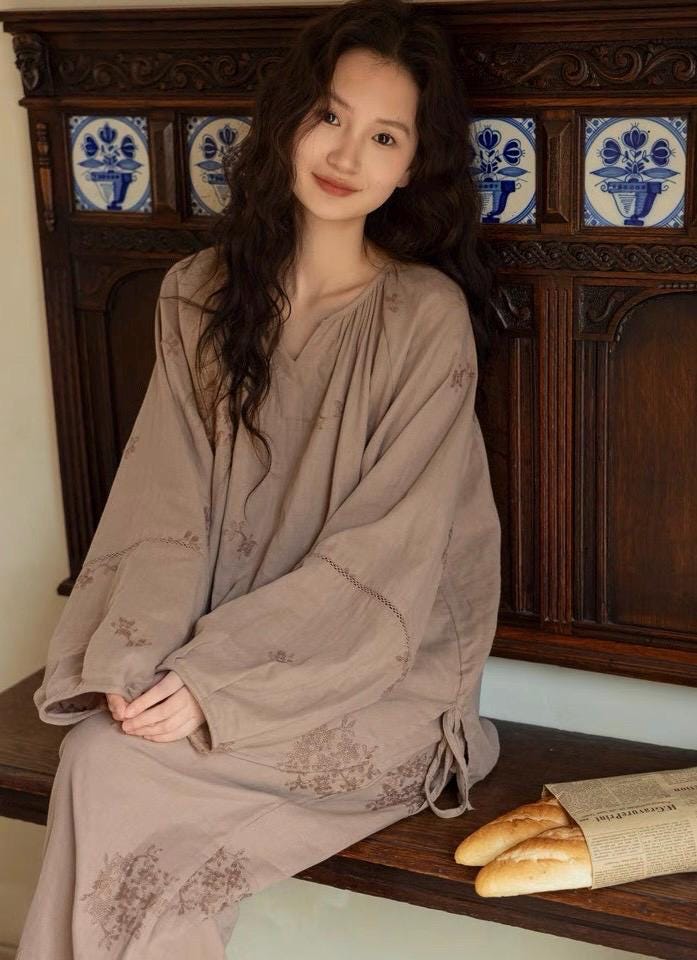 Bamboo Cotton Embroidered Lounge Set – Relaxed Fit Two-Piece for Home & Outdoor Wear