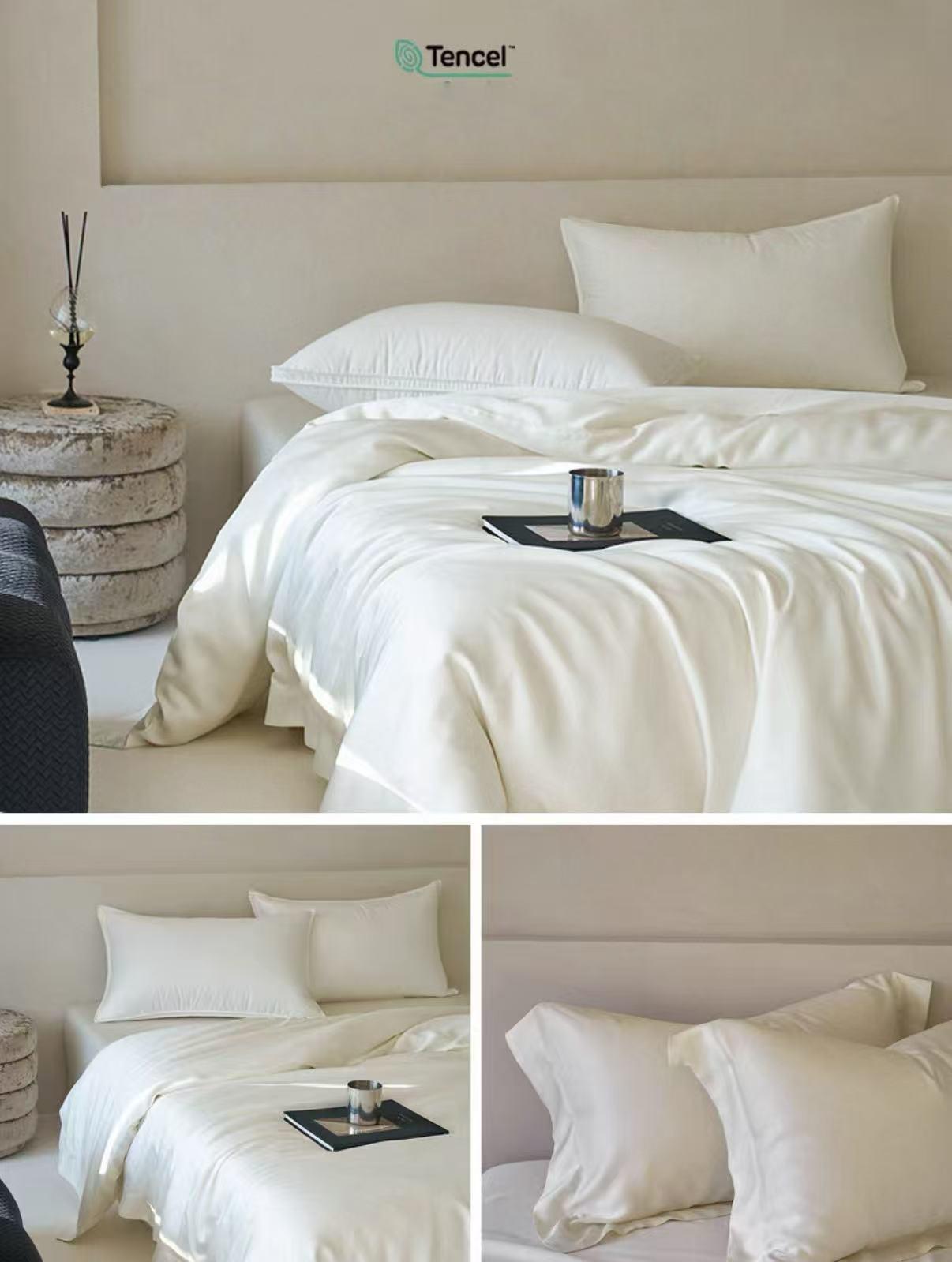 This luxuriously soft bed sheet set is made from 100% TENCEL™ Lyocell — a premium eucalyptus-based fabric renowned for its silky smooth texture, cooling breathability, and eco-conscious origins. The gentle sheen and elegant drape add a sophisticated touch to any bedroom sanctuary.