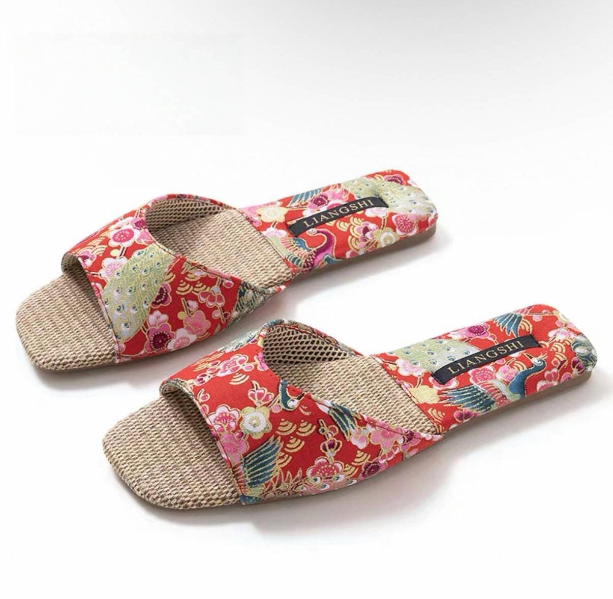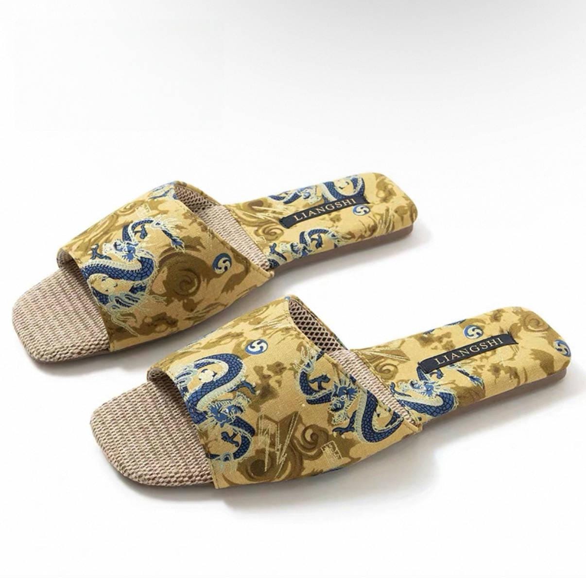 Embroidered Dragon Summer Slippers - Unisex Oriental Handmade Footwear